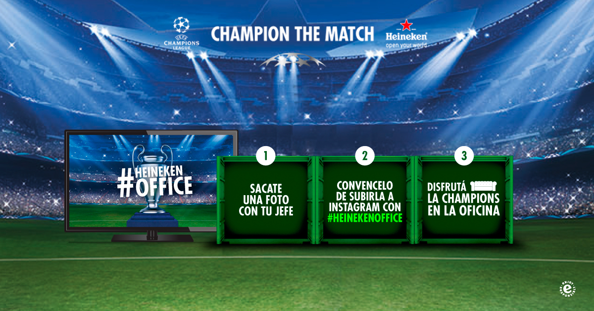 Para las SemiFinales del campeonato llevamos a cabo la acción “Heineken Office“. Con la excusa de que los partidos eran en horario de trabajo en nuestro país, invitamos a los fans a convencer a sus jefes de subir una foto a instagram con ellos y participar para ver las SemiFinales de la UEFA Champions League 2015 en la oficina al estilo Heineken (Living Heineken, TV HD con señal Fox, cerveza Heineken, picadita, merchandising Heineken)